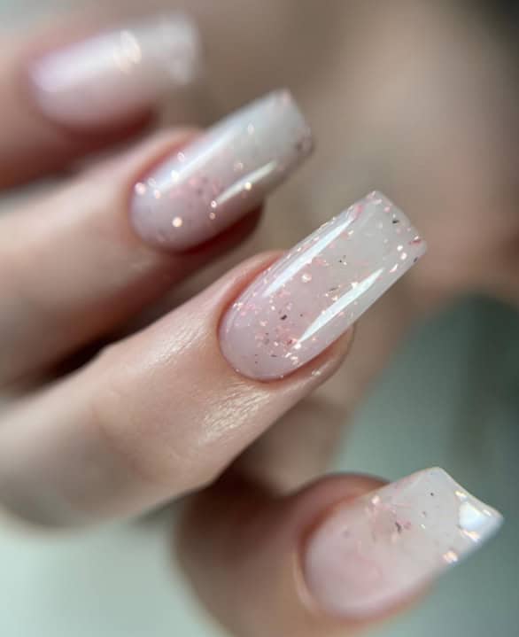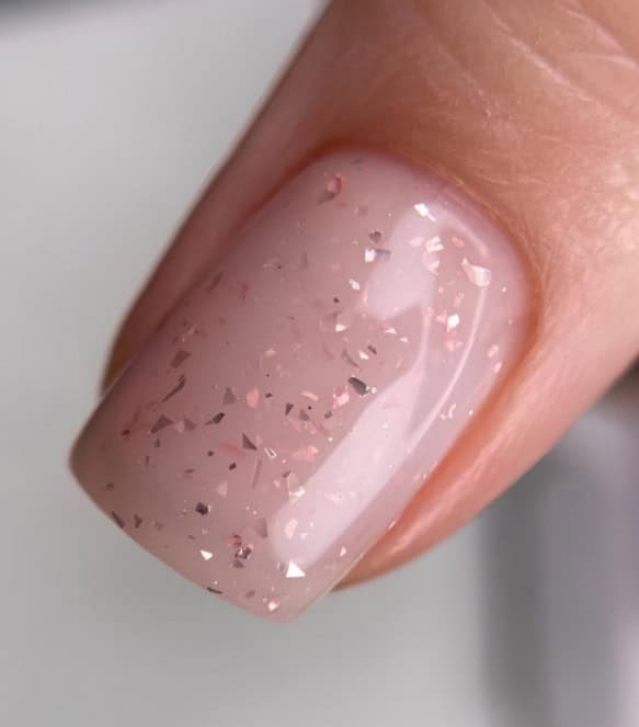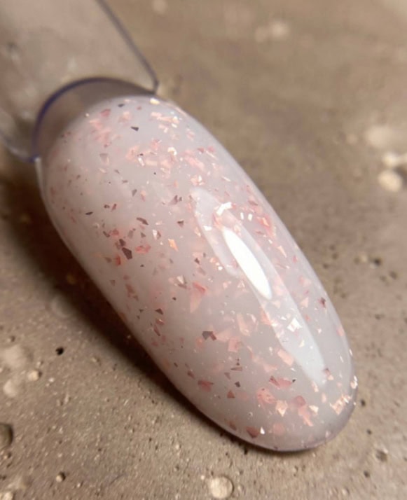 Color: Milky white with pink flakes