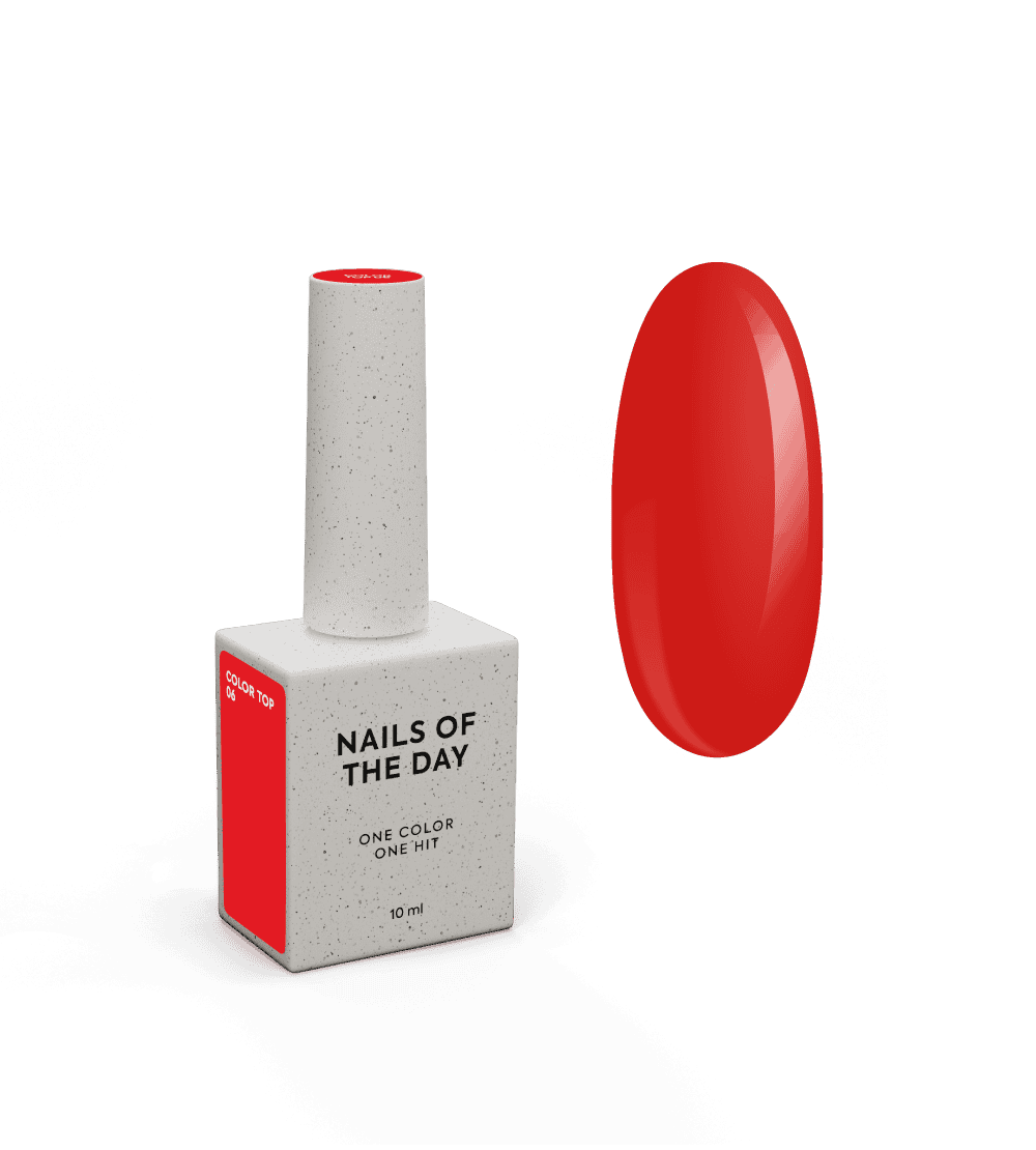 Get the ultimate bold red nails in just one step with NAILSOFTHEDAY Color Top #06 – a highly pigmented, opaque red top coat that combines intense color and a flawless, ultra-glossy finish in one bottle. This no-wipe top coat eliminates the need for a separate color layer, saving you time while delivering rich, classic red look.