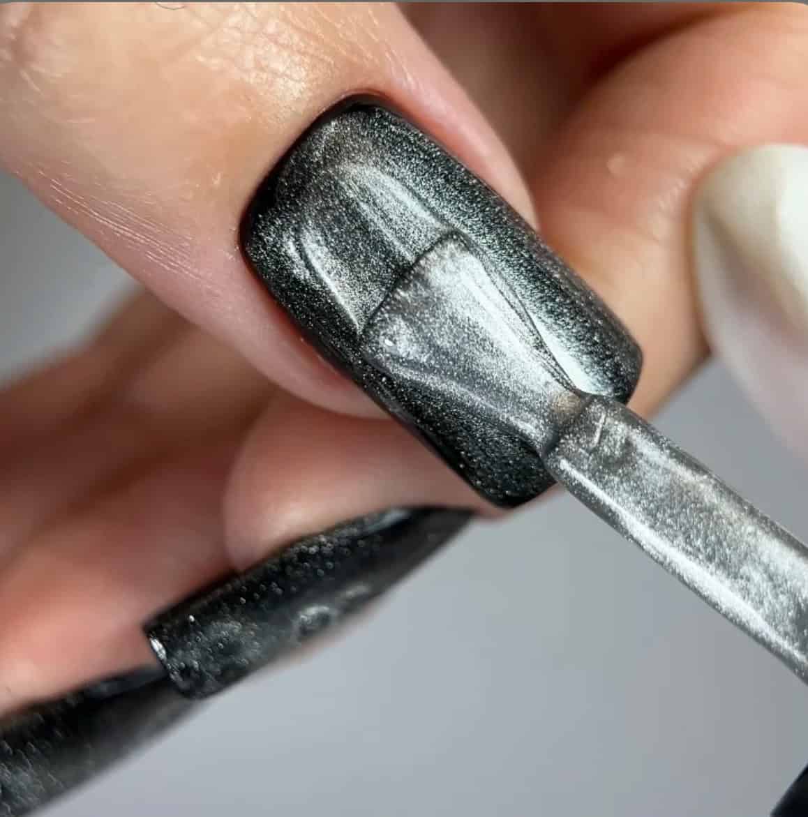 - Apply Wondercat Gel Polish in one or two layers for desired intensity. Level it evenly and use magnet to form your preferred magnetic design.