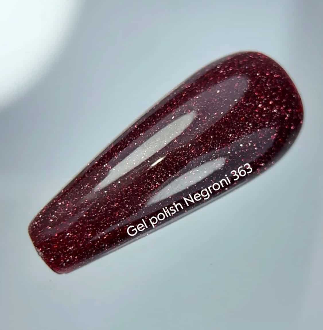 NAILSOFTHEDAY Refletive Gel Polish Negroni — a dark burgundy gel polish infused with silver reflective shimmer. This mesmerizing shade transforms under light, revealing a dazzling galaxy-like sparkle that captures every eye.